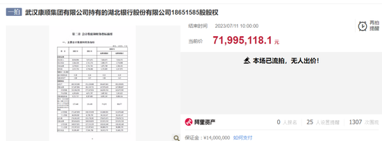 7月11日,阿里司法拍卖平台浮现,湖北银行该1865.1585万股股权在1300屡次围不雅后却无东谈主报名,诚然也无东谈主出价,最终流拍。