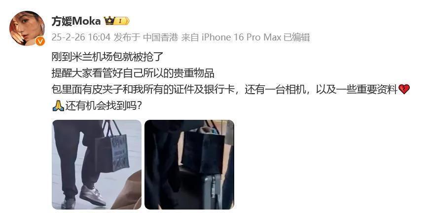 2月26日,郭富城配头方媛在应付平台发布称我方介意大利米兰机场碰到攫取,手提包内证件银行卡相机等财物丢失。